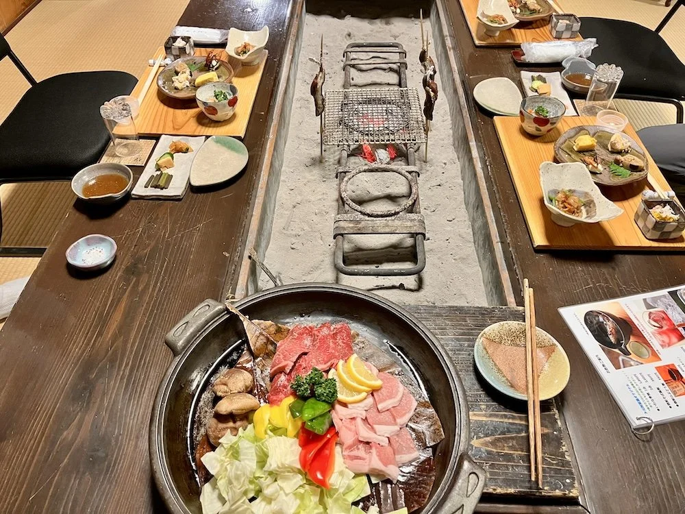 At one of our inns, a dish was grilled at the table on magnolia leaves.