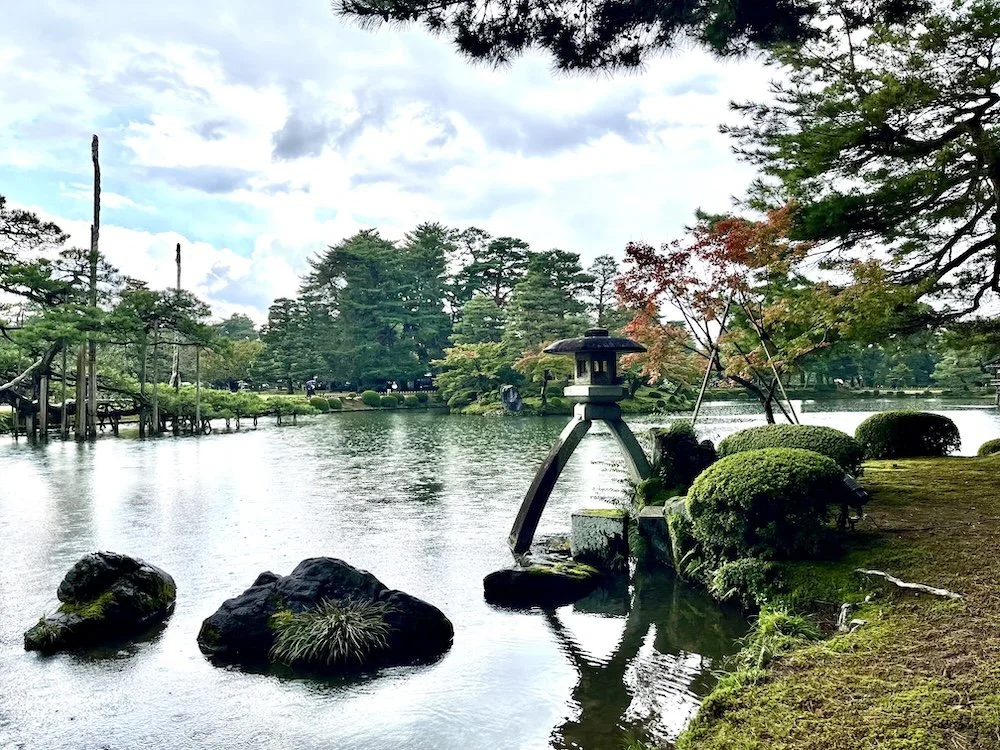 The iconic two-legged stone lantern at Kenroku-en in Kanazawa.